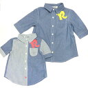 ***半端在庫売り尽くし セール 【メール便(S)OK】REVARIO★シャンブレー&ストライプ6分袖シャツ《80cm 90...