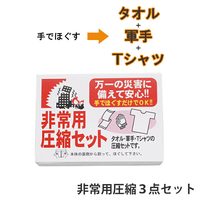 非常用圧縮3点セット Tシャツ タオル 軍手 手でほぐす 便利