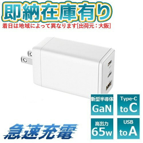 ハイディスク 3台同時に急速充電できる PD65W対応 USB充電器(USB−C×2+A×1) ホワイト HD−AC3P65W...