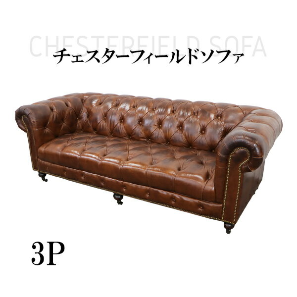 送料無料 チェスターフィールドソファ 3人掛け 肘掛 総本革 本革 レザー ビンテージレザー ヴィンテージ...