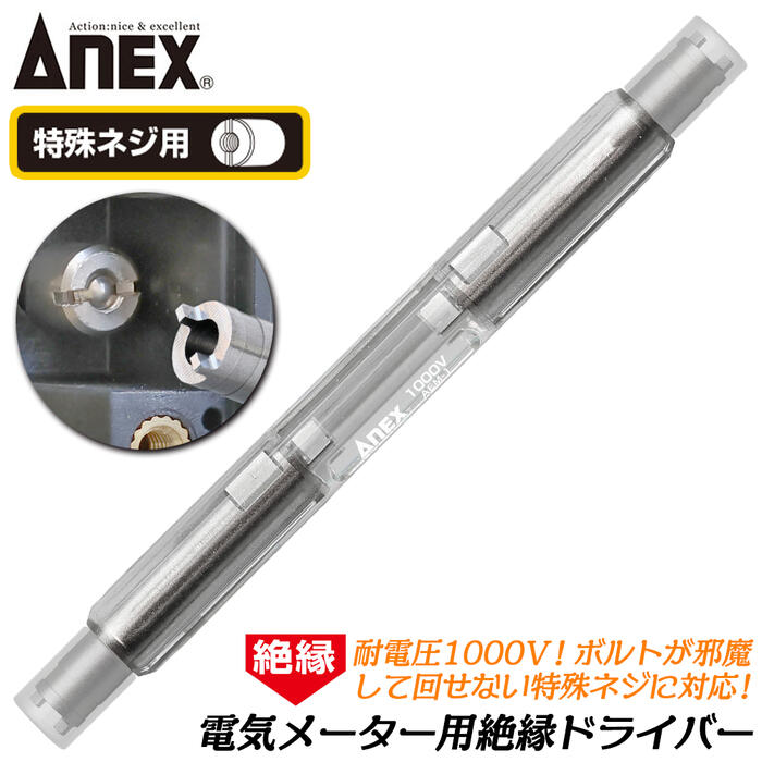 ANEX 特殊ネジ用 電気メーター用絶縁ドライバー 保持キャップ付き 電気工事 絶縁仕様 通電しない 両頭 ...
