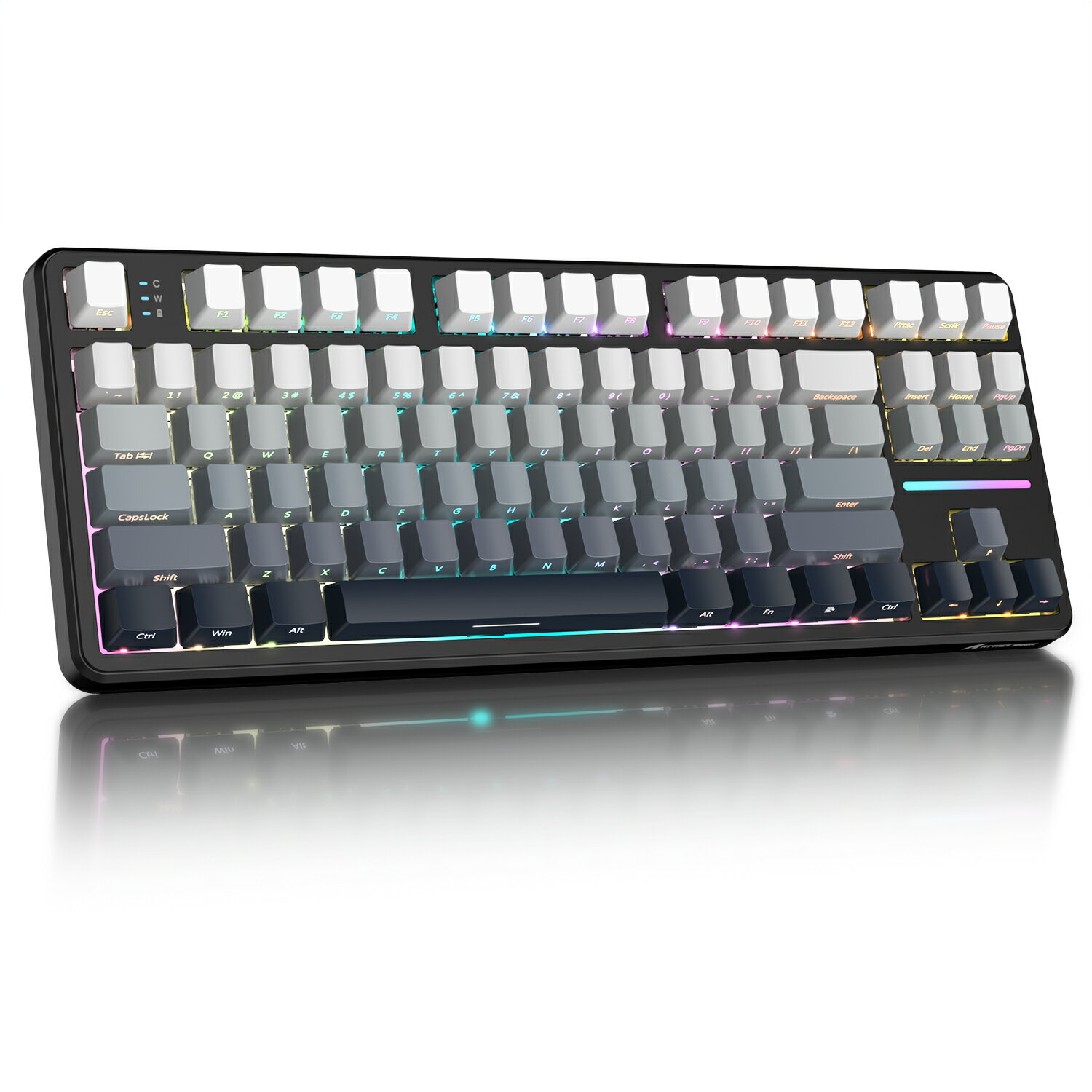 ATTACK SHARK X85 メカニカルゲーミングキーボード 白翡翠スイッチ PBTチェリーキーキャップ RGB 3つ接続モード ホットスワップ 5層サイレンサーパッド&メタルノブ付き 75% 81キー アン