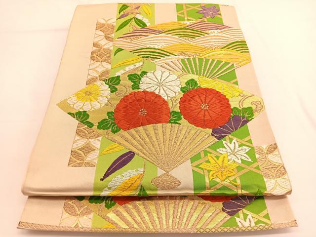 平和屋着物◎六通柄袋帯 唐織 扇面立波花文 金銀糸 正絹 逸品 BAAW3360hv