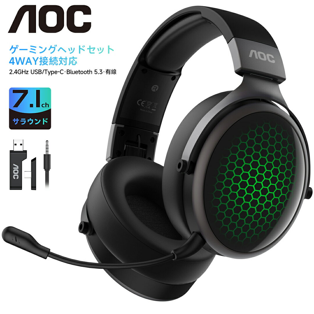 【新発売限定!クーポン利用で4,980円!】国内正規品 AOC ワイヤレス ゲーミング ヘッドセット 7.1chサ...