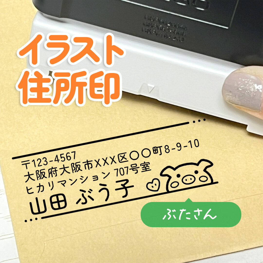 ぶたさん|イラスト住所印|1~4行まで自由に文字入れができるデザイン住所スタンプ|アドレス印 オリジ...