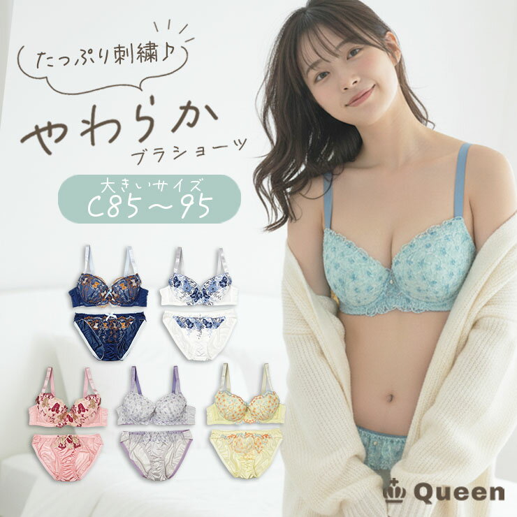 大きいサイズ レディース ブラジャー ショーツセット 上下セット ブラセット 下着 C80 C85 C90 C95 D80 ...