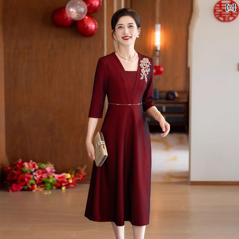チャイナ ドレス スカート 幸せな 義母の ウェディングドレス ドレス 2025 秋と 冬の 新しい 母の ドレ...