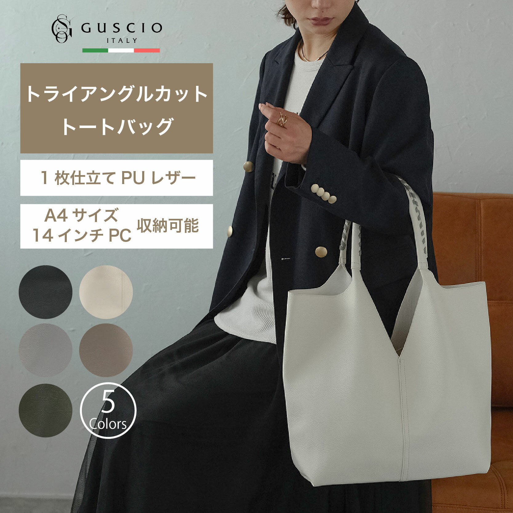 【グッシオ公式】一枚仕立て トート カット デザイン バッグ ユニセックス トレンド PU レザー ブラック カーキ グレージュ グレー アイボリー ダークグレー guscio basic