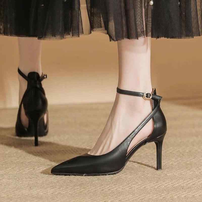 パンプス レディース 女性用 浅口 ポインテッドトゥ ピンヒール エレガント ワンストラップ ハイヒール ...