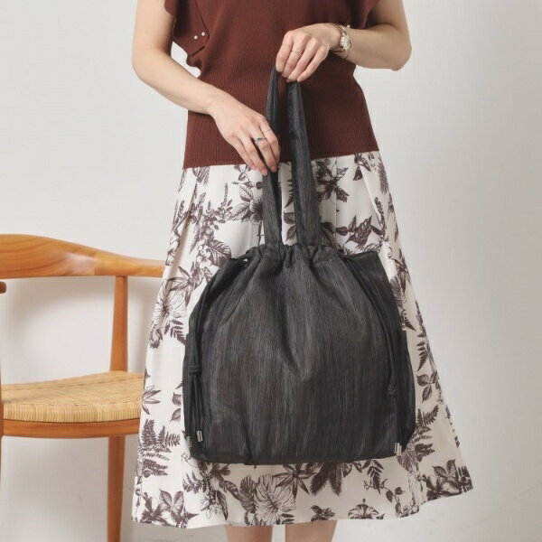 [型番:P9372097]【デザイン】くしゅっとしたプリーツ見えのシアー素材を使用した巾着トート。表面感のあるラメシアー生地で一気にこなれ感UP♪しっかりマチ幅もあるので充実の収納力です◎口元を絞らずスクエア型...