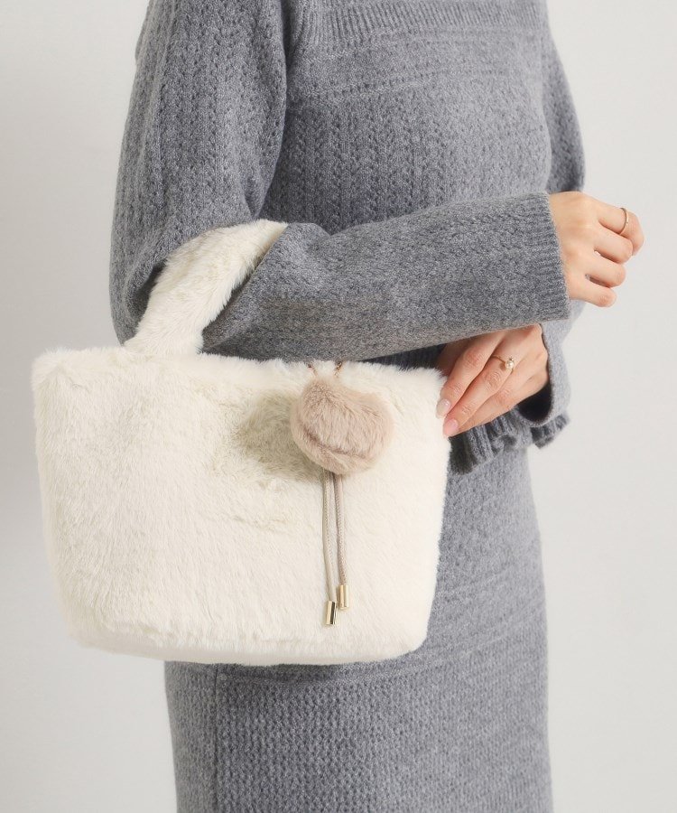 ITS' DEMO チャーム付きフェイクファートート イッツデモ バッグ トートバッグ グレー ベージュ ホワイト