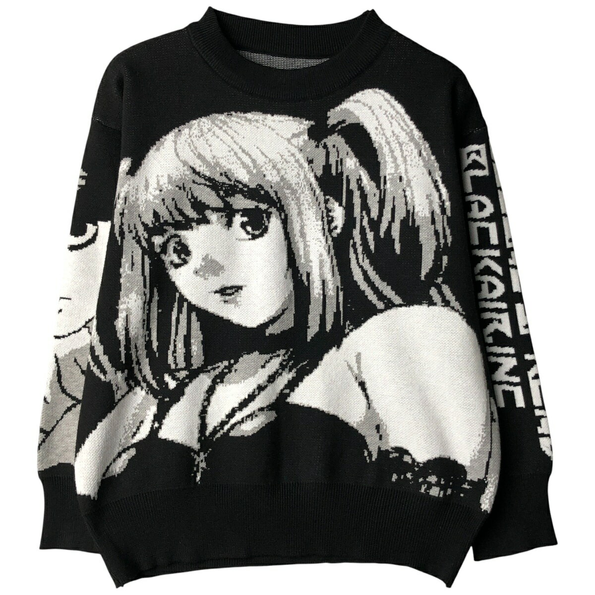 古着 DEATH NOTE デスノート ミサミサ L 総柄 アニメ レーヨン×アクリルニットセーター レディースL相当...