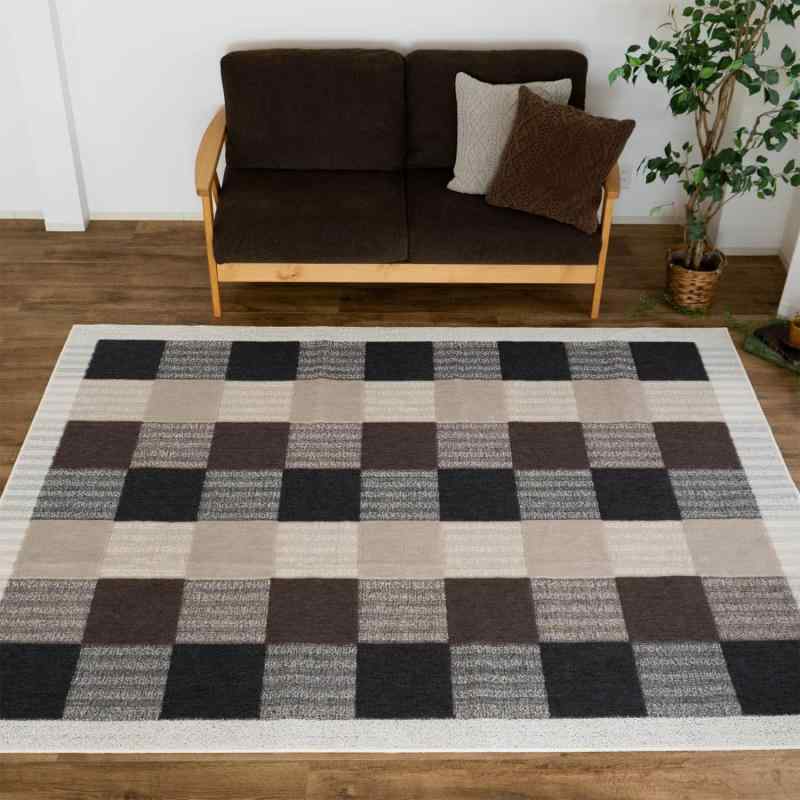 洗える 抗菌 防臭 防ダニ ラグ カーペット モダン ブロック 国産 日本製 ホットカーペット 床暖房対応