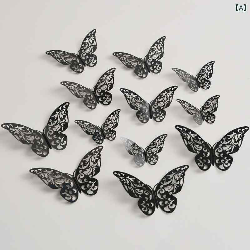 ウォールステッカー 3D 立体 くり抜き 蝶 バタフライ 黒 ブラック リビング 壁飾り イベント フェスティ...
