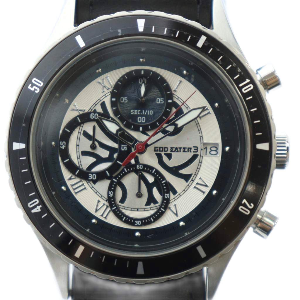 【中古】ゴッドイーター3 GOD EATER3 主人公(男)モデル 腕時計 ウォッチ クォーツ デイト カレンダー付き クロノグラフ シルバー色