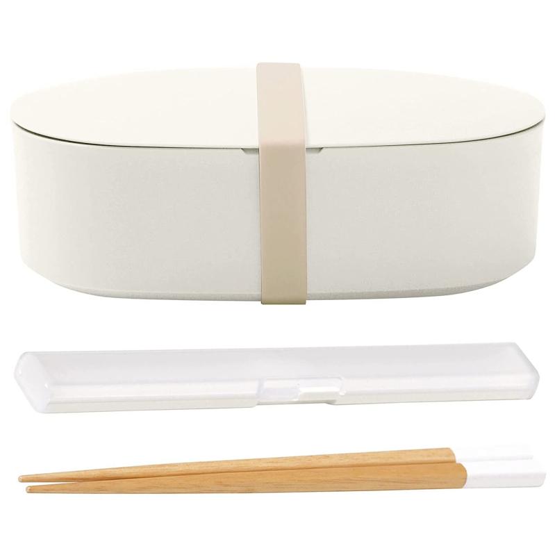 ansio (アンシオ) お弁当箱 2点セット 650ml (ふわっと盛れる/電子レンジ対応/食洗器対応) 日本製 (ランチボックス/箸 箸箱セット) 新生活 (ホワイト)【スマート】小さく見えてしっかり容量を確保したスマートな...