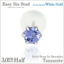タンザナイト ピアス ホワイトゴールド 薄型6本爪3mm シンプル 片耳用 fourm クリスマス ギフト Xmas Christmas レディース メンズ 男性 女性 ラッ
