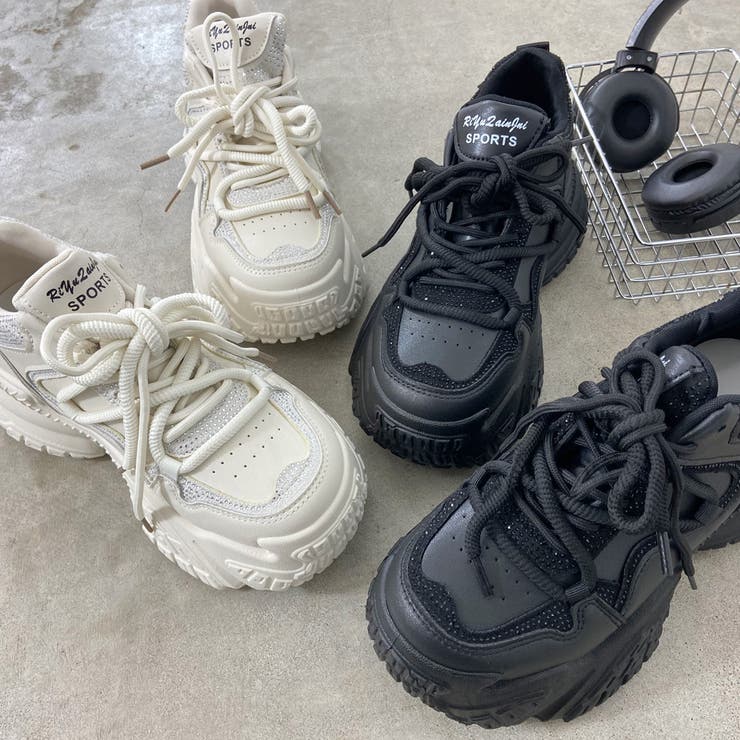 ボリューミーな厚底ソールとストーンデザインで存在感のあるローカットダッドスニーカー。フロントのロゴタグがポイント◎動く度にきらきらと輝くストーンが目を惹くデザイン◎シンプルデザインで、様々なコーディ...
