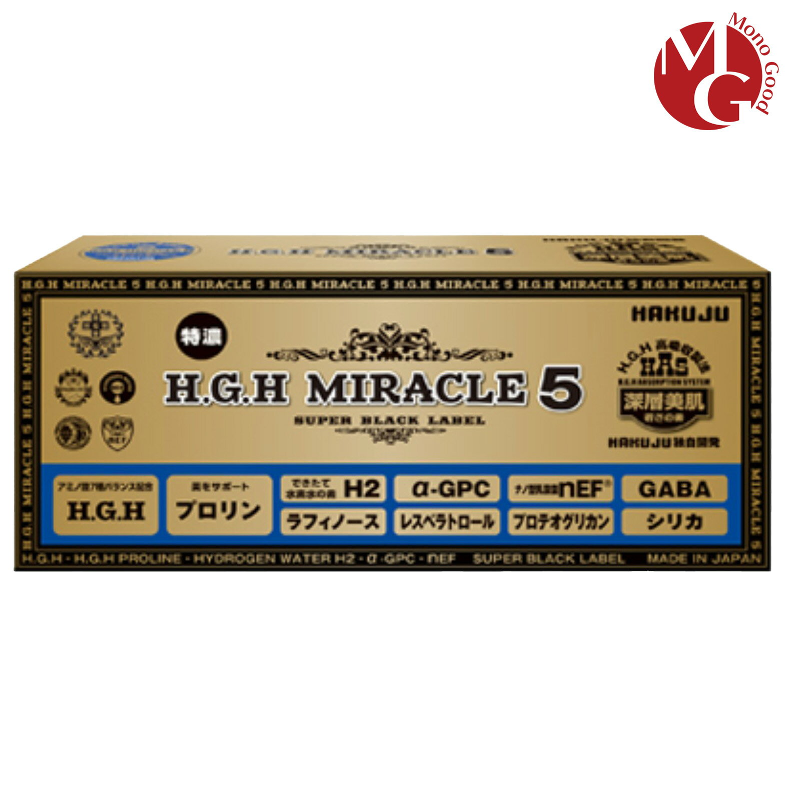 【新生誕生】最高 HGH H.G.H MIRACLE5 SUPER BLACK LABEL 1箱17gX31袋入り プロテオグリカン配合 白寿BIO医研 HGHの最高峰 HGH協会認定品 高濃度アミノ酸独自のバランス配合 サプリメント 送料無料 -------------...
