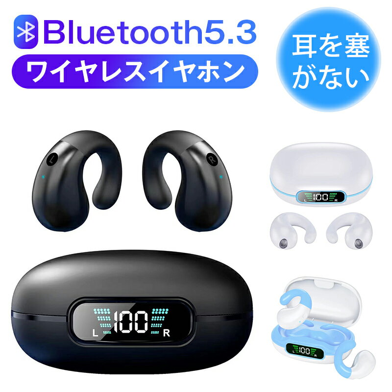 ワイヤレスイヤホン スポーツイヤホン 空気伝導ブルートゥースイヤホン 耳を塞がない Bluetooth5.3 開放型 耳に挟むイヤカフ型 Hi-Fi高音質 両耳 自動ペアリング 耳掛け式 快適な装着感 ブルートゥース5.3イヤホン 5