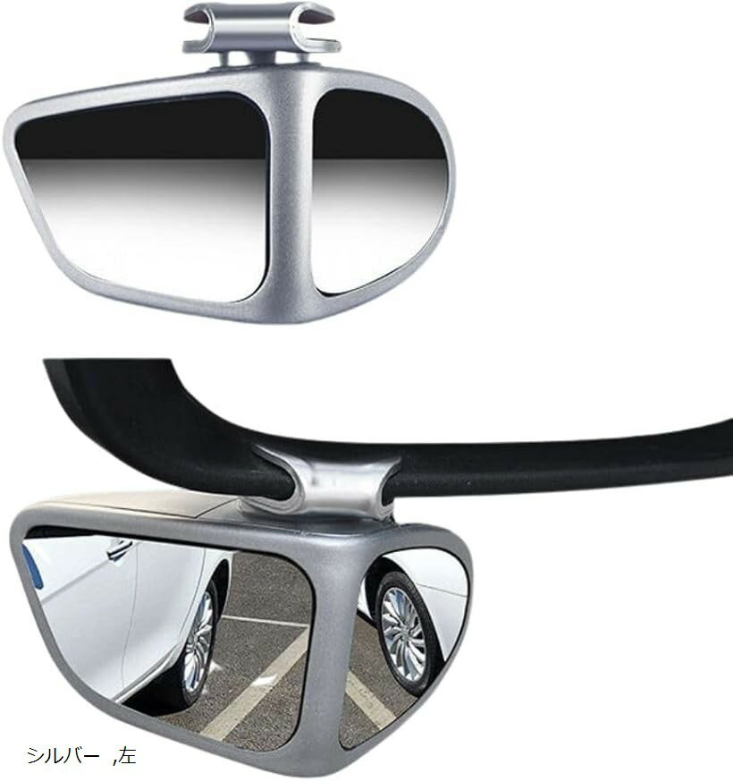 補助ミラー 車 サイド補助ミラー 後方 自動車 サイドミラー 死角 事故防止 (シルバー, 左)