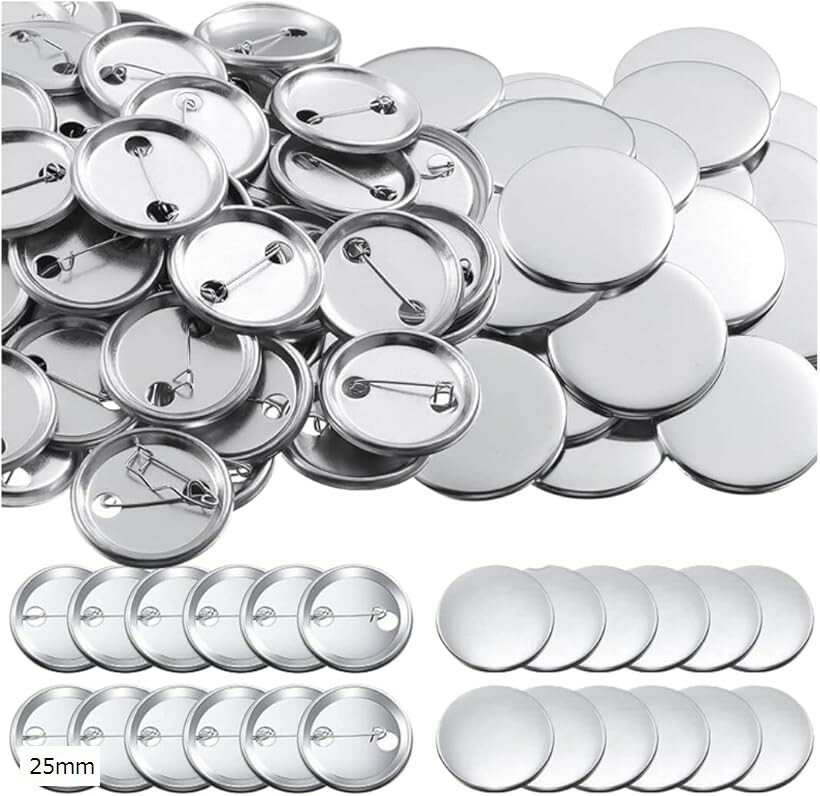 缶バッジ パーツ 素材 安全ピン キット 缶バッジメーカー 100個 セット (シルバー, 25mm)