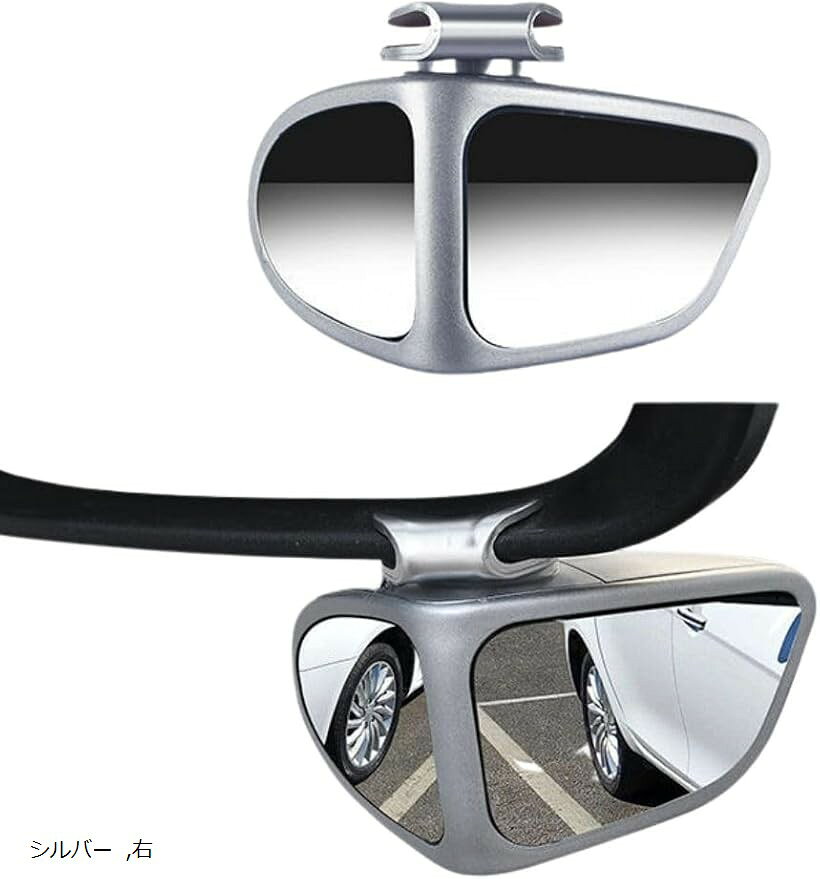 補助ミラー 車 サイド補助ミラー 後方 自動車 サイドミラー 死角 事故防止 (シルバー, 右)