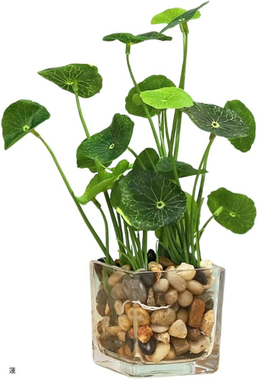 観葉植物 フェイク 造花 ミニ 卓上 インテリア おしゃれ 人工 フェイクグリーン ガラスポット (蓮, 25cm...
