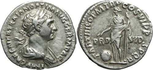 トラヤヌス帝のローマのデナリウス銀貨 - プロビデンシア