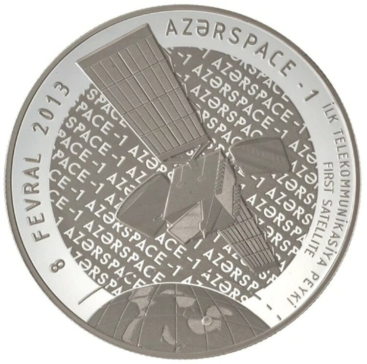 5マナト 2015 アゼルバイジャン プルーフ 0.999 シルバーコイン First Satellite * AZERSPACE *