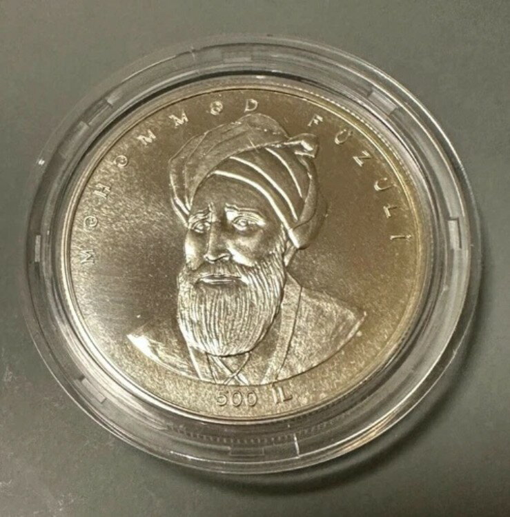 50マナト 1996年 アゼルバイジャン プルーフ 0.925 シルバーコイン「マハマド・フズリ」。 KM#5