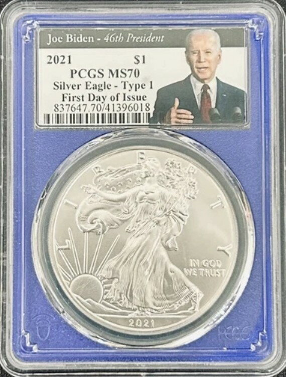 2021年 シルバーイーグル PCGS MS-70 シルバーイーグル 発行初日 - ジョー・バイデン ラベル