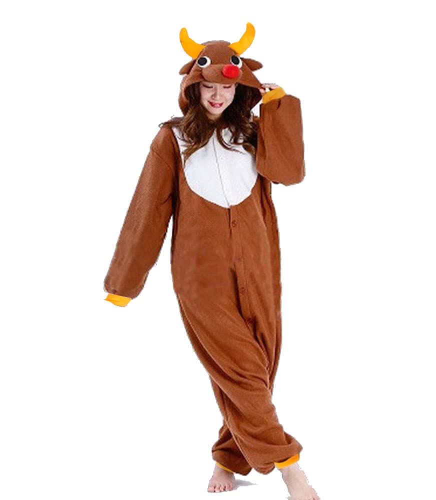 ゆったり 着ぐるみ 大きいサイズ コスチューム コスプレ衣装 男女共用 オールインワン クリスマスパーティー 変装 ホームウェア 寝間着 超可愛い 柔らか 動物 トナカイ 大人用