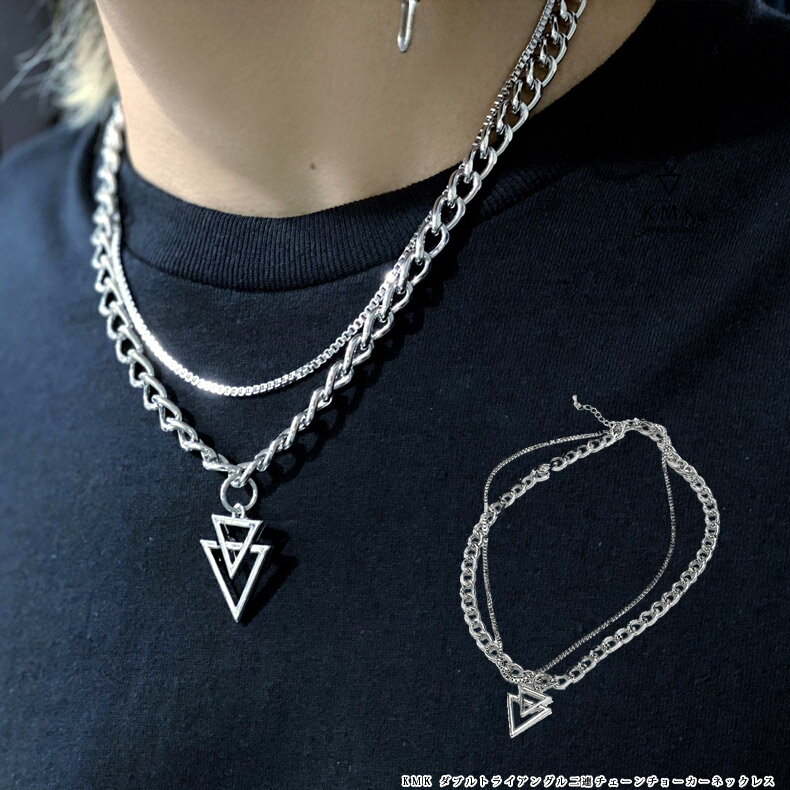 KMK ダブルトライアングル二連チェーンチョーカーネックレス原宿 キングリーマスク KINGLYMASK ユニセッ...