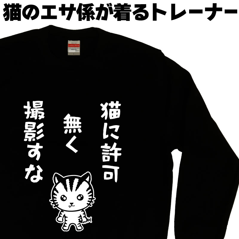 名入れ トレーナー|猫エサ係トレーナー 猫に許可無く撮影すな| おもしろいスウェット 裏起毛 3L 4L プ...