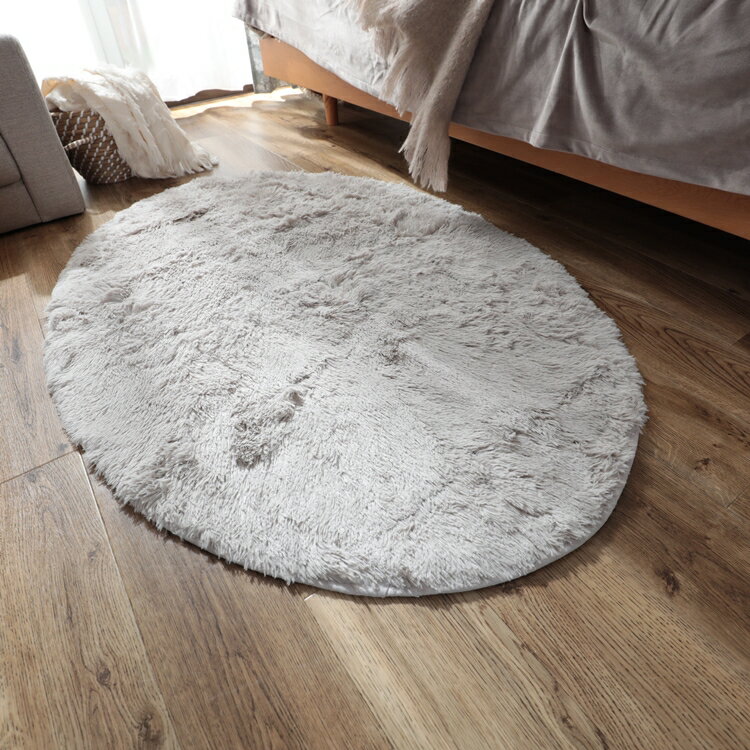 90x130cm シフォン (楕円形) LGY ライトグレー 洗える すべり止め オールシーズン ウレタン 抗菌防臭効...