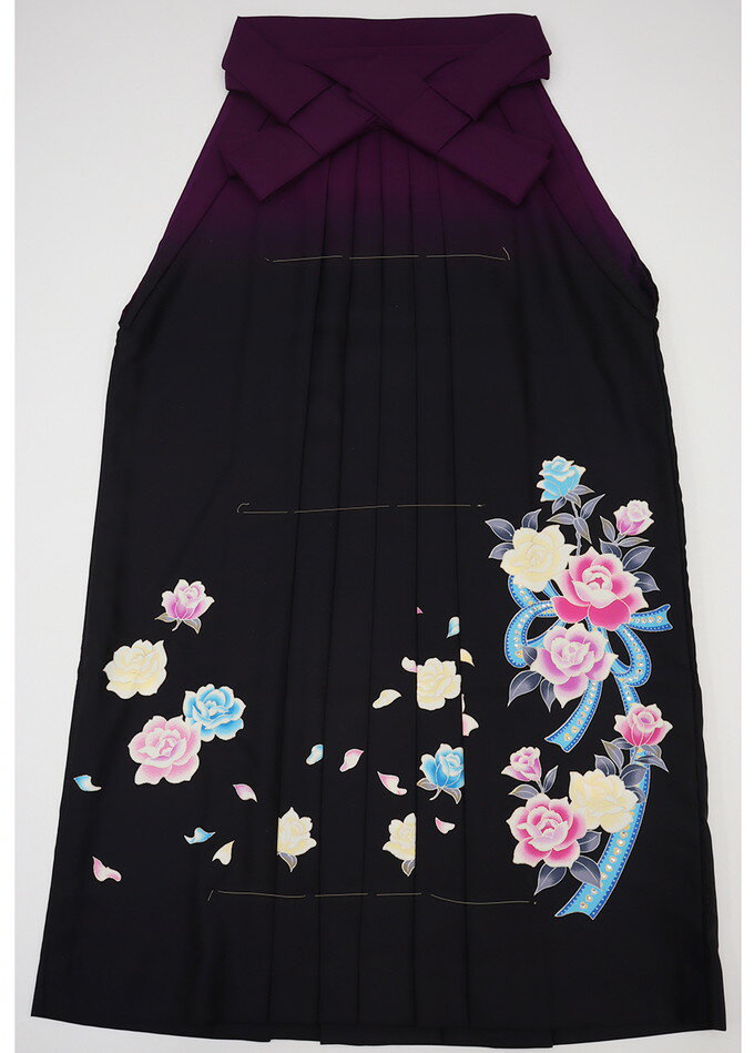 【Leah Dizon】女性袴/ポリ【中古】はいからさん◇黒×紫色ぼかし ラインストーン付き◆紐下約98cm
