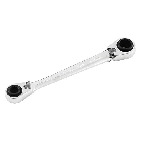 SK11(エスケー11)の一覧はこちら1本で4サイズに対応できます。【用途】六角ボルト・ナットの締付け、緩め作業。【機能】ギア数72山、送り角5度の高機能レンチです。フラットな左右回転切り替えレバーは、ワンフィ...