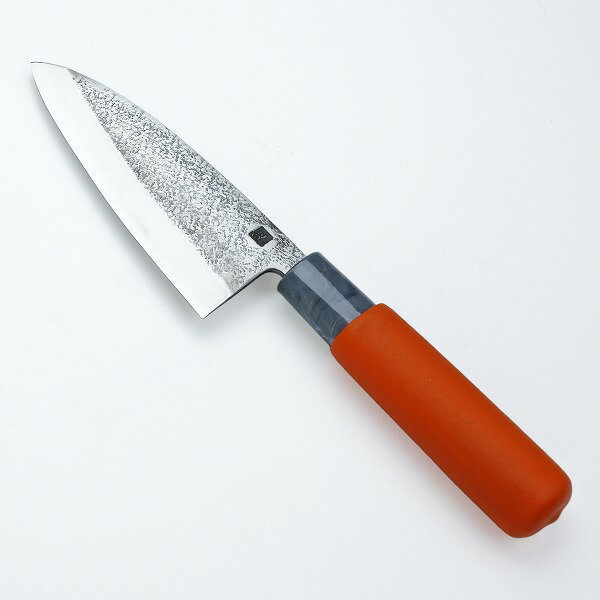 小出刃包丁 片刃 120mmV金10号 ステンレス 槌目仕上げ PVCグリップ 左利き用 (料理小包丁 和包丁 出刃包...