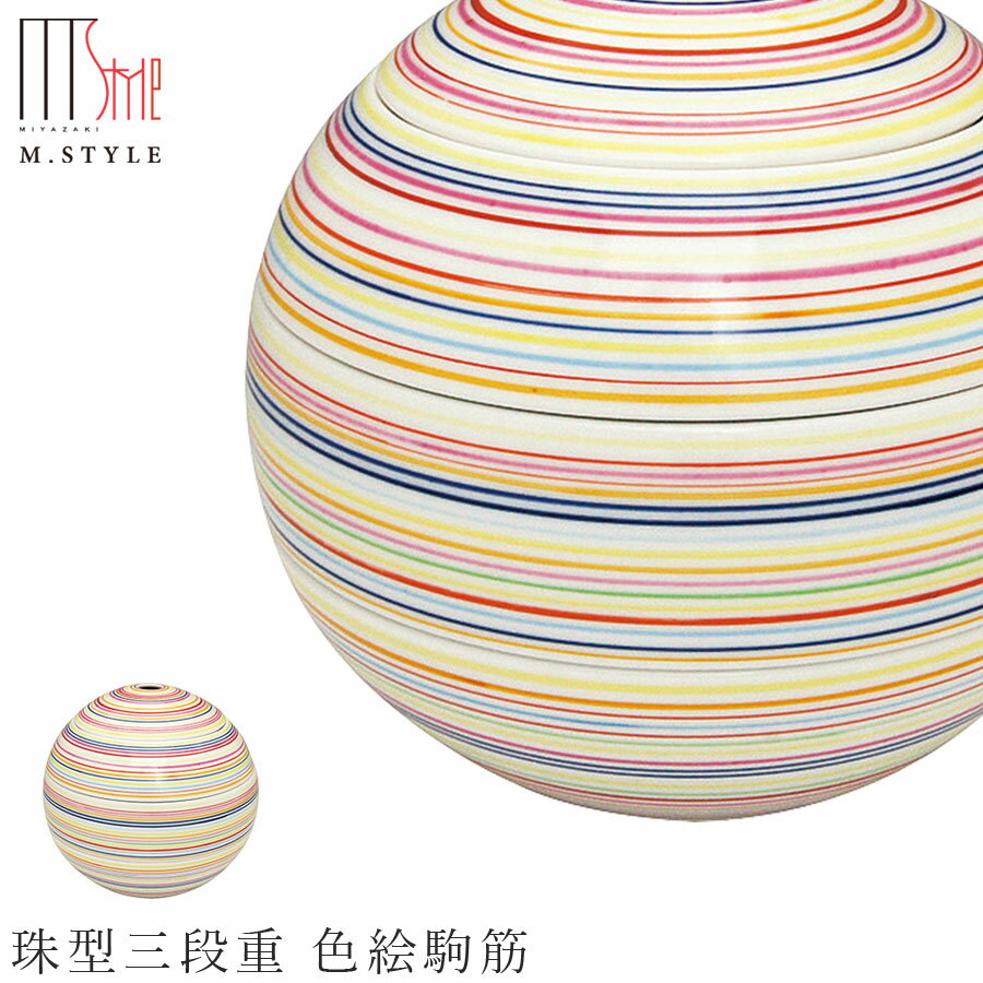 【珠型三段重 色絵駒筋(カラフル)】 ※柄は手作業の為、1点1点、多少風合いが異なります。商品の特性としてご了承下さい。 「李荘窯 −りそうがま−」 現在の有田焼窯元の中でも高い人気を誇る李荘窯のお重です。...
