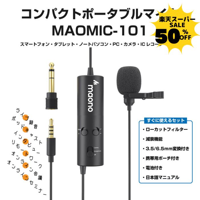 商品情報マイク指向360度 全指向主な機能ローカットフィルター/減衰機能/機器の互換性切り替えスイッチケーブル長6m製品内容製品本体・マイクフード・クリップ・6.5mmアダプター・ボタン電池・携帯用ポーチ・多...