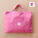 外ポケット部分に オリジナルワンポイントピンクのちゅーりっぷをつけた ピンク色無地のレッスンバック 縦30cm横40cm オックス地 綿100% 袋の中布はピンクの無地を使用 氏名票は内側についています。 シンプ...
