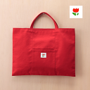 外ポケット部分に オリジナルワンポイント 赤いちゅーりっぷ をつけた 赤色無地のレッスンバック 縦30cm横40cm オックス地 綿100% 袋の中布は赤の無地 氏名票は内側についています。 シンプルなものをお好み...