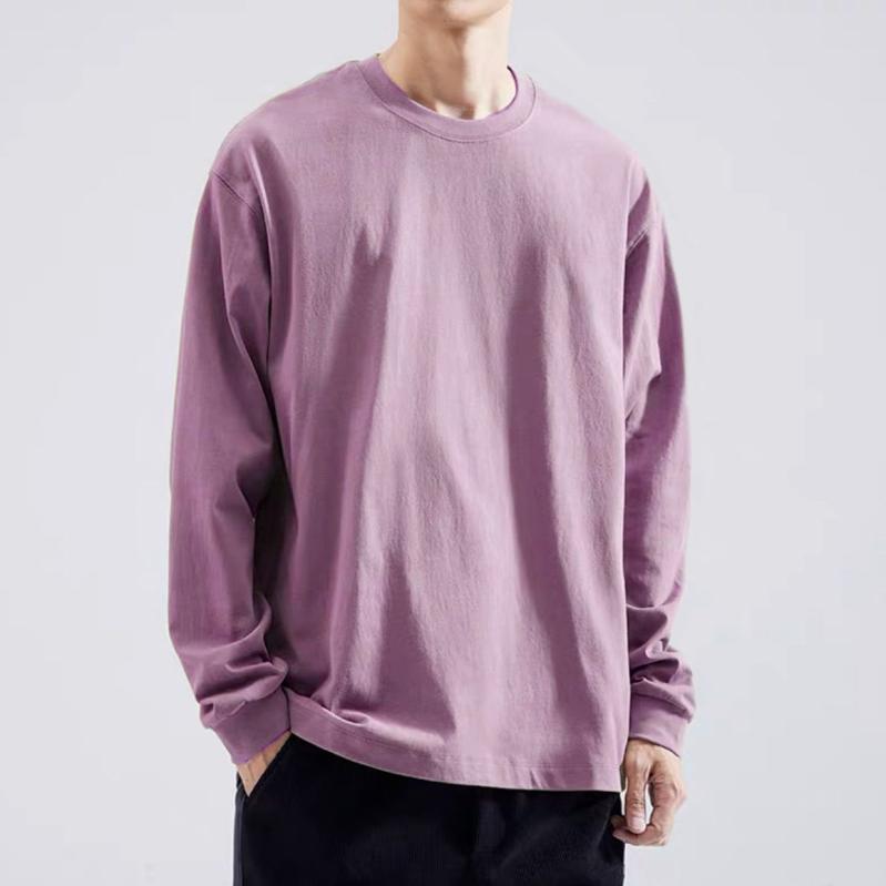 Tシャツ 男女兼用 長袖 コットン ゆったり ラウンドネック カットソー 春秋 400g ヘビーウェイト ラベンダー