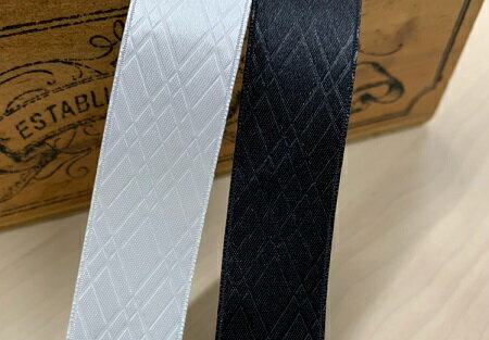 エンボスサテンリボン チェック 18mm巾 白・黒 No.d146-111-18 日本製 《国産 両面サテンリボン(※加工...