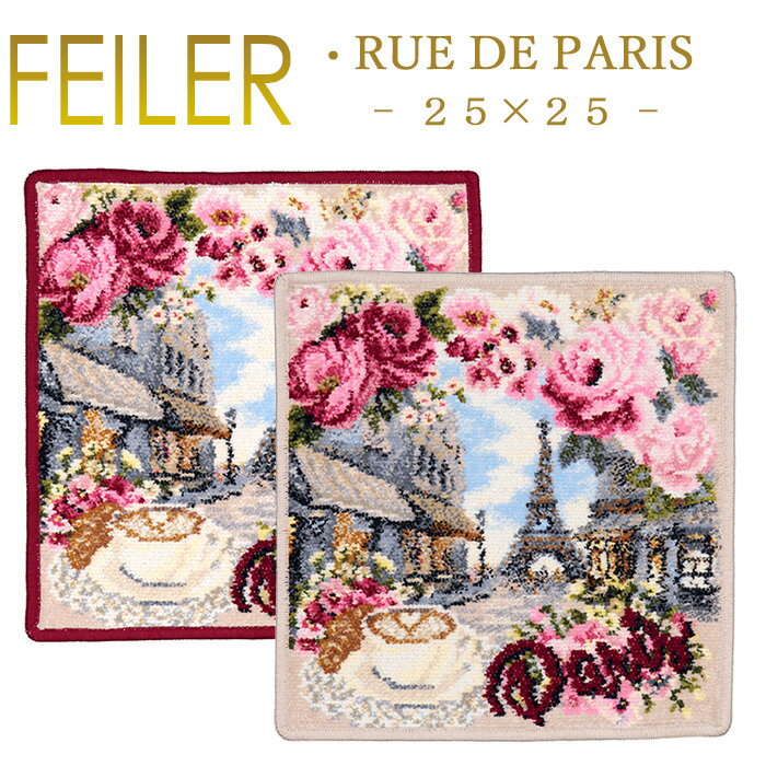 メール便 FEILER CHENILLE TOWEL RUE DE PARIS 25cm×25cm 人気のはんかち ハンカチタオル ミニタオル ショルダーバッグ も シュニール織