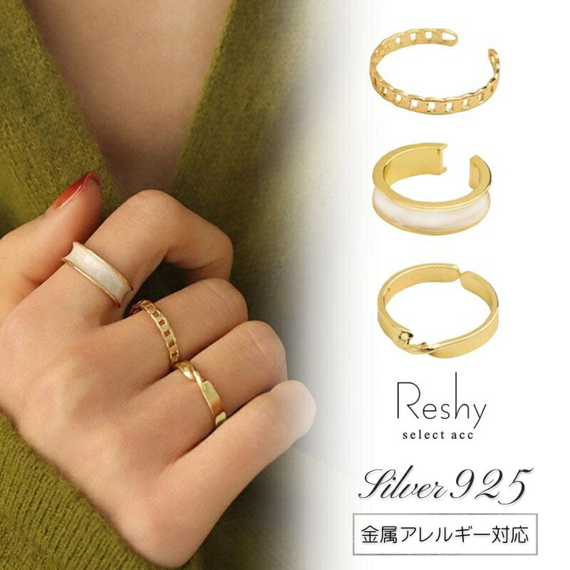 指輪 レディース シルバー925 リング セット 指輪 金属アレルギー 安心 フリーサイズ デザイン リング シルバー925 リング リングセット ニッケルフリー つけっぱなし Reshy レーシー