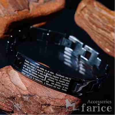 クロス(十字架)アレンジ ルード系聖書シルバーメッセージ(文字)デザイン ブラックコーティングステンレ...