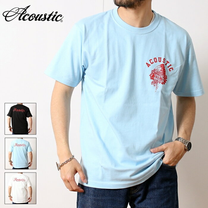 Acoustic アコースティック Tシャツ 半袖 メンズ ブランド 2025年 春 夏 厚手 インディアン ロゴ プリント デザイン 丸胴 ヘビーウェイト おしゃれ カジュアル アメカジ バイカー