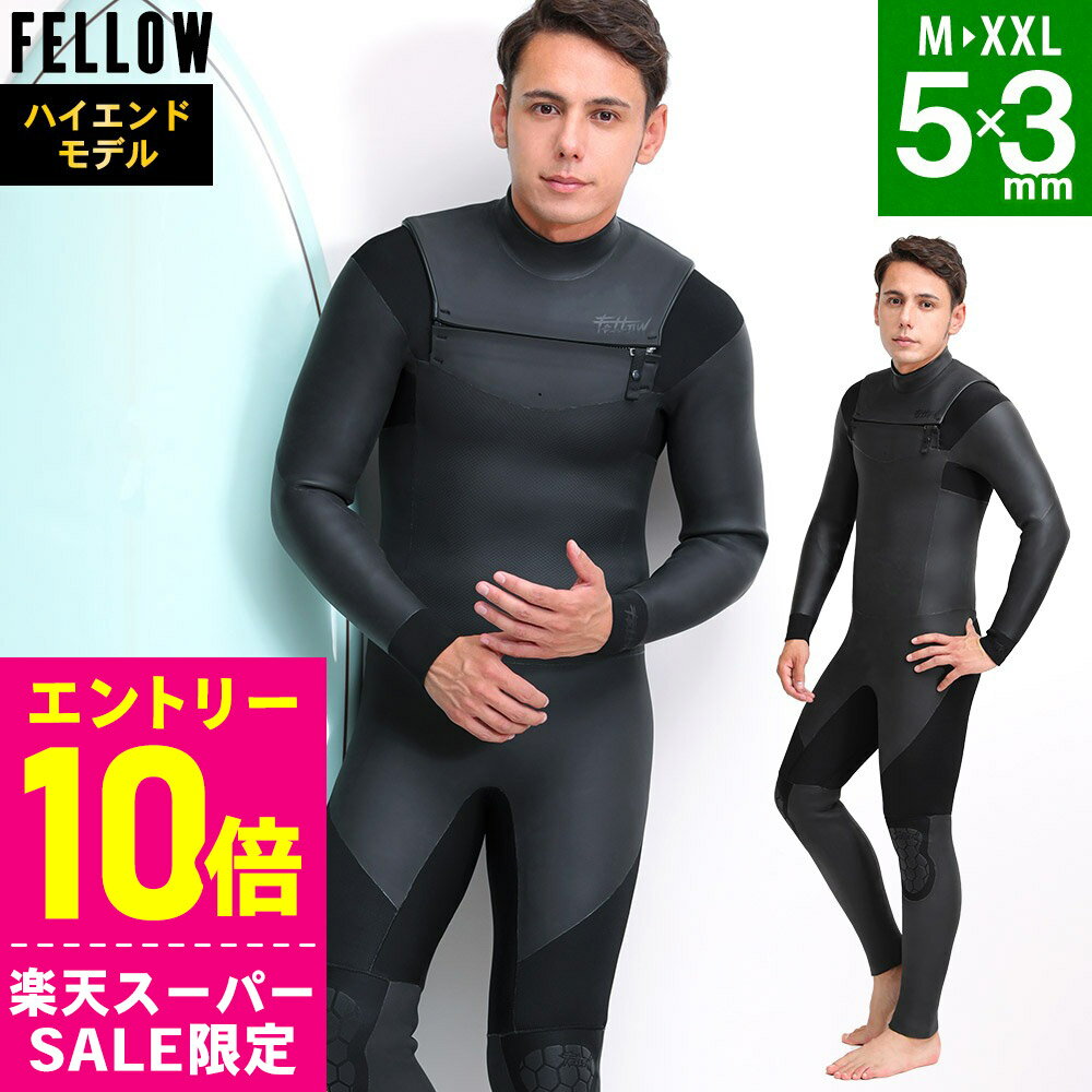 [開始4時間限定クーポン]FELLOW セミドライ 5×3mm ウェットスーツ ハイエンドモデル チェストジップ メ...